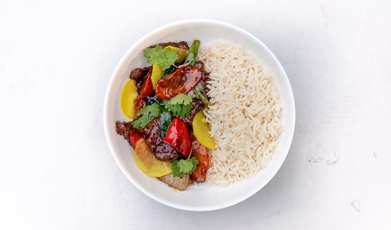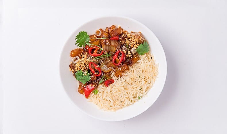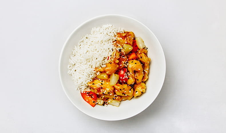 Класичний зразок китайської кухні. Густий світлий соус, солодка частина виражена яскравіше за кислу. Підходить до приготування курки, свинини, риби, овочів та морепродуктів.